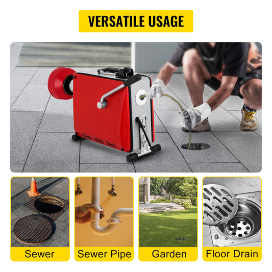VEVOR GQ-100 Electric Pipe Dredging Machine Sewer Dredger 390W Automatic Sink Toliet Floor Tube Plunger Unblocker Cleaning Tool