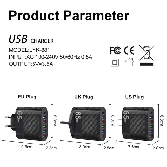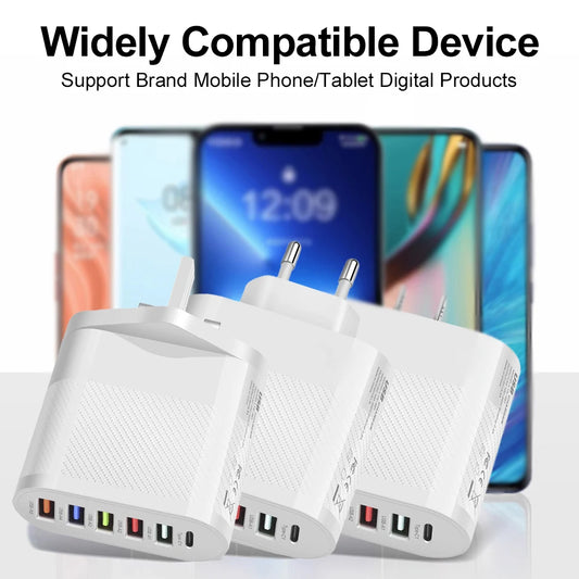 6 Ports USB Type C Charger PD Fast Charging Adapter Quick Charge3.0 For iPhone Samsung Xiaomi Huawei Phone Wall Charger Plug #3