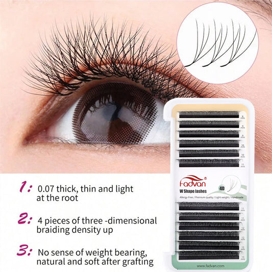 Extensiones de pestañas Fadvan 4D W con forma de abanico, volumen prefabricado, estilo suave, visón, fáciles de embellecer, pestañas postizas naturales