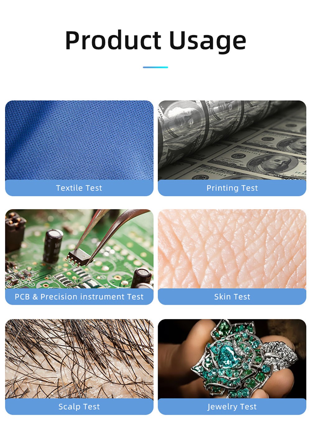 4. WiFi digital microscope is widely used for different applications in different industries, such as textile inspection, printing inspection, PCB precision machinery testing, educational purpose, hair check, skin examination, microbial observation, and inspection of jewelry and coins.