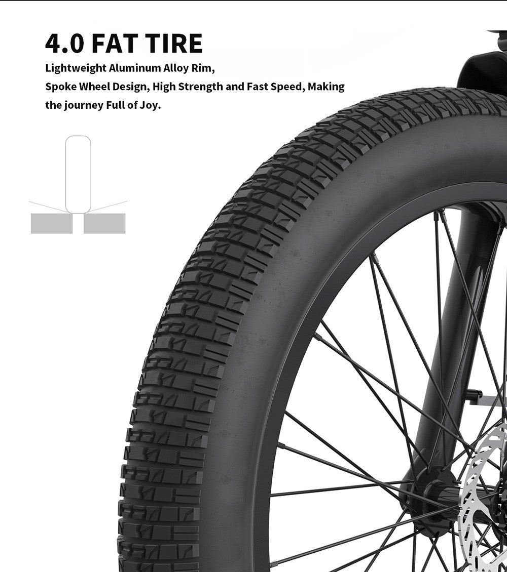 26*4.0 inch fat tires bring you maximum comfort in any road condition for optimum traction and steadiness.