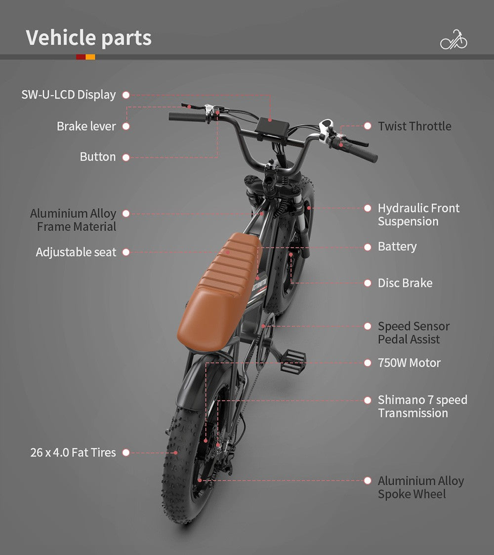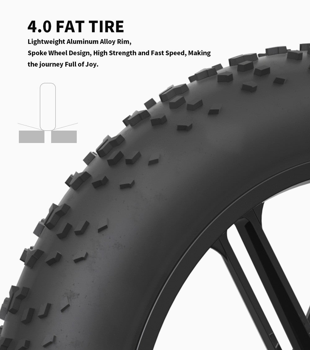 20*4.0 inch fat tires bring you maximum comfort in any road condition for optimum traction and steadiness.