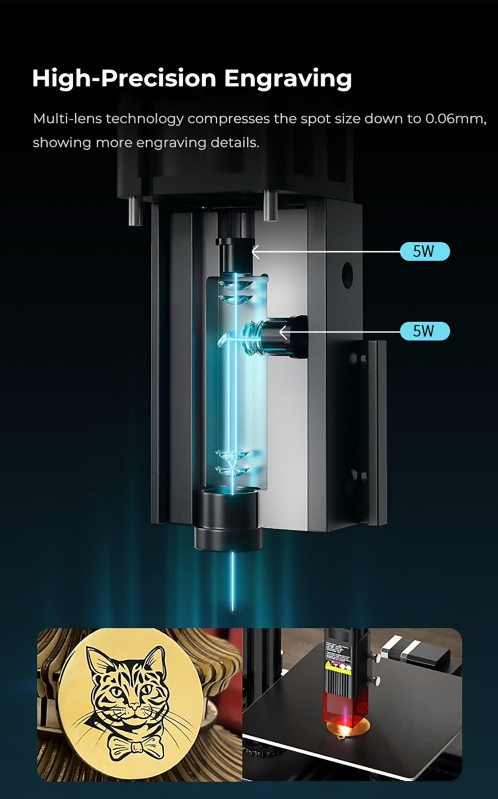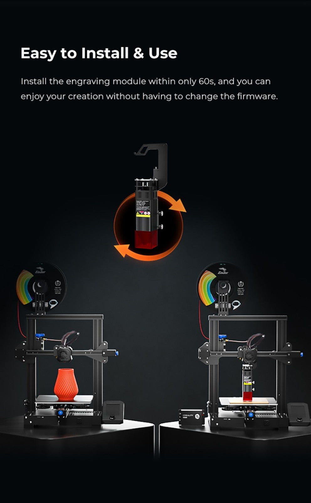 With 0.06mm high precision, this 10w laser head can offer a better engraving process and produce more excellent work. Also, you are able to turn your 3D printer into a laser engraver in seconds due to this laser module kit.