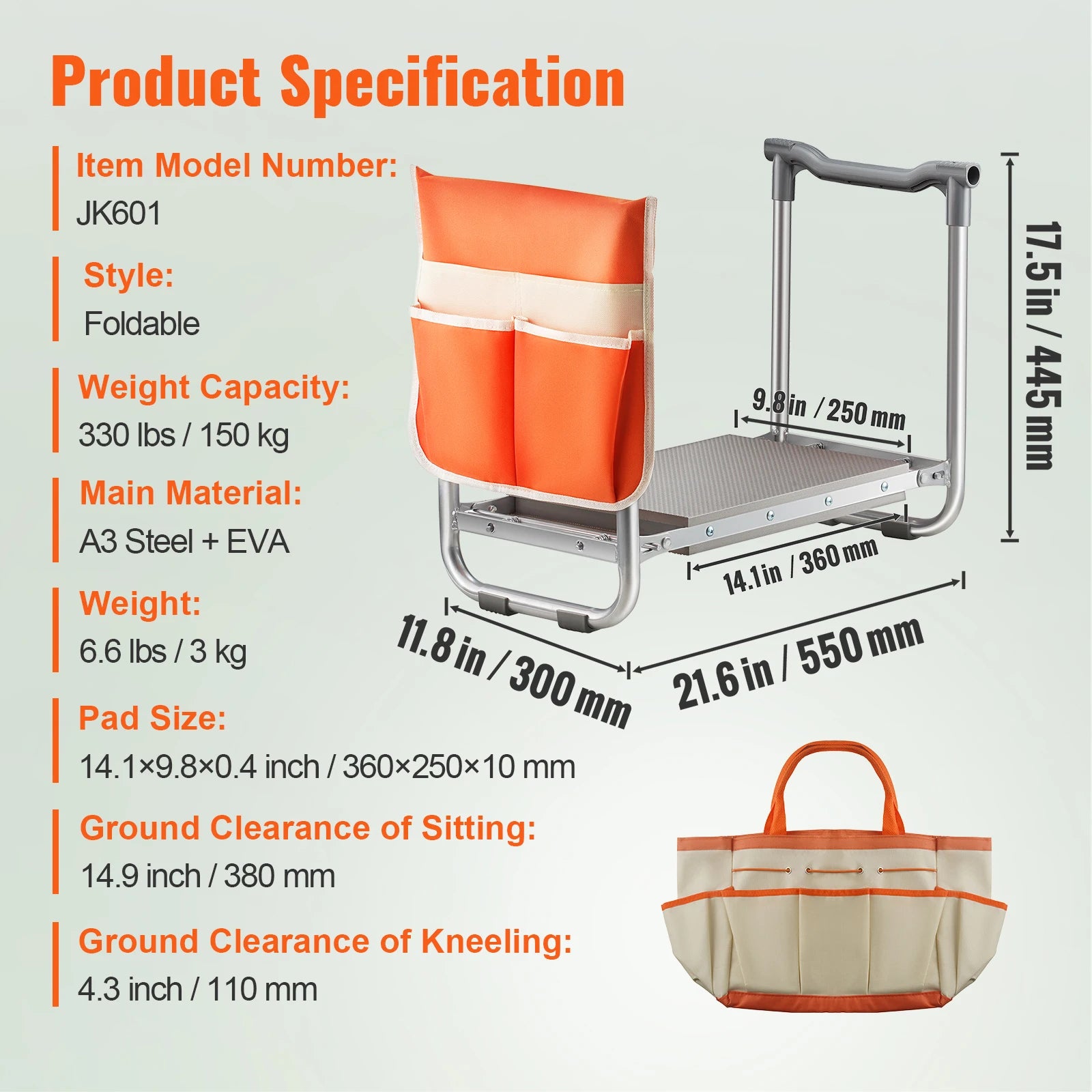 VEVOR Garden Kneeler and Seat Foldable Garden Stool Kneeling Bench for Gardening with Tool Bag Gifts for Grandparents Seniors