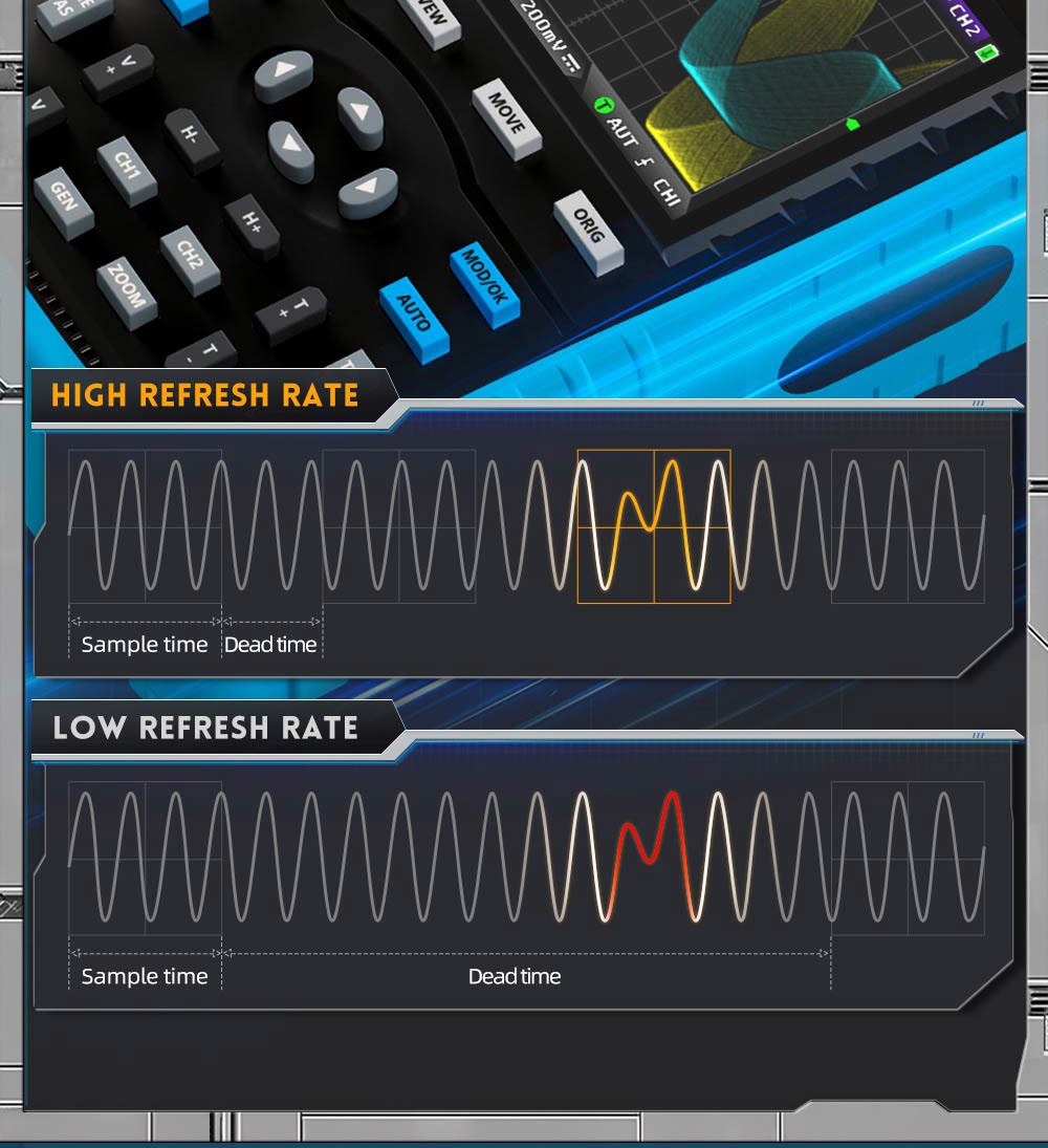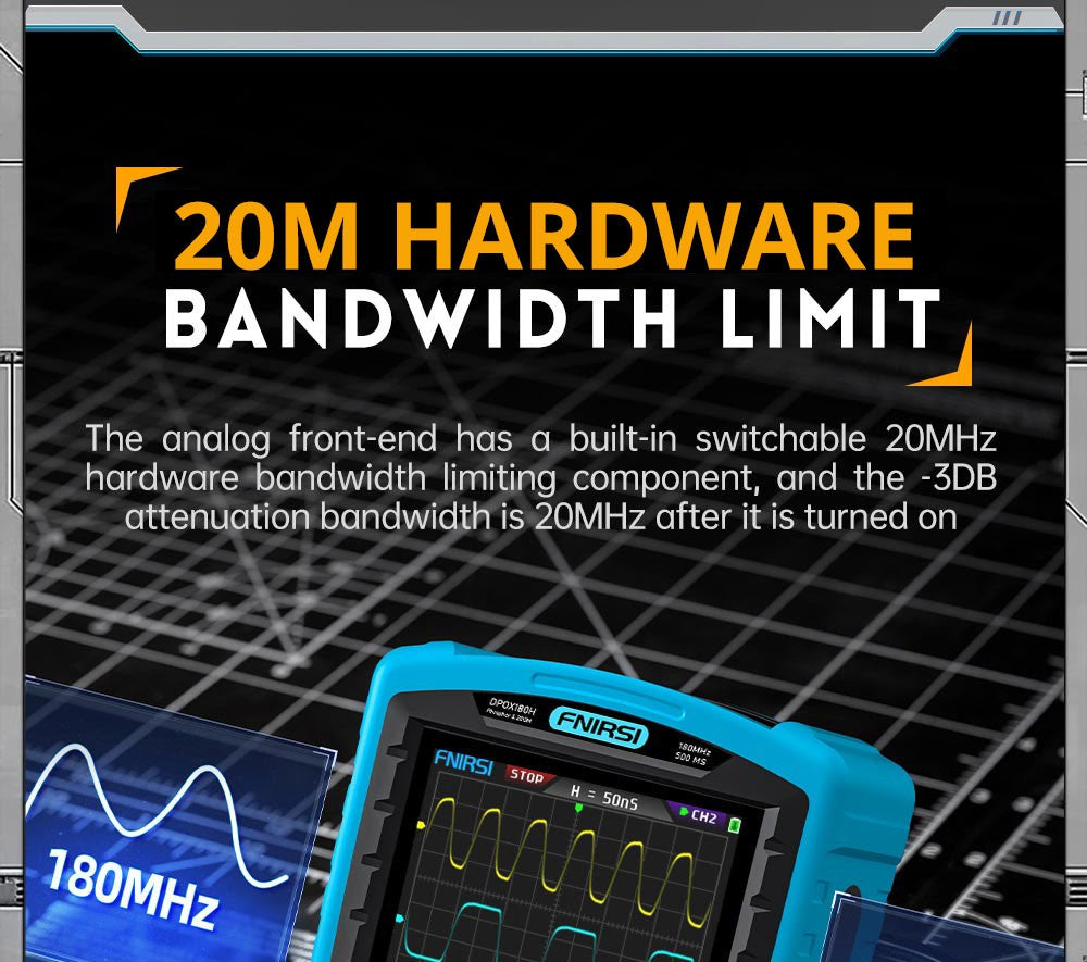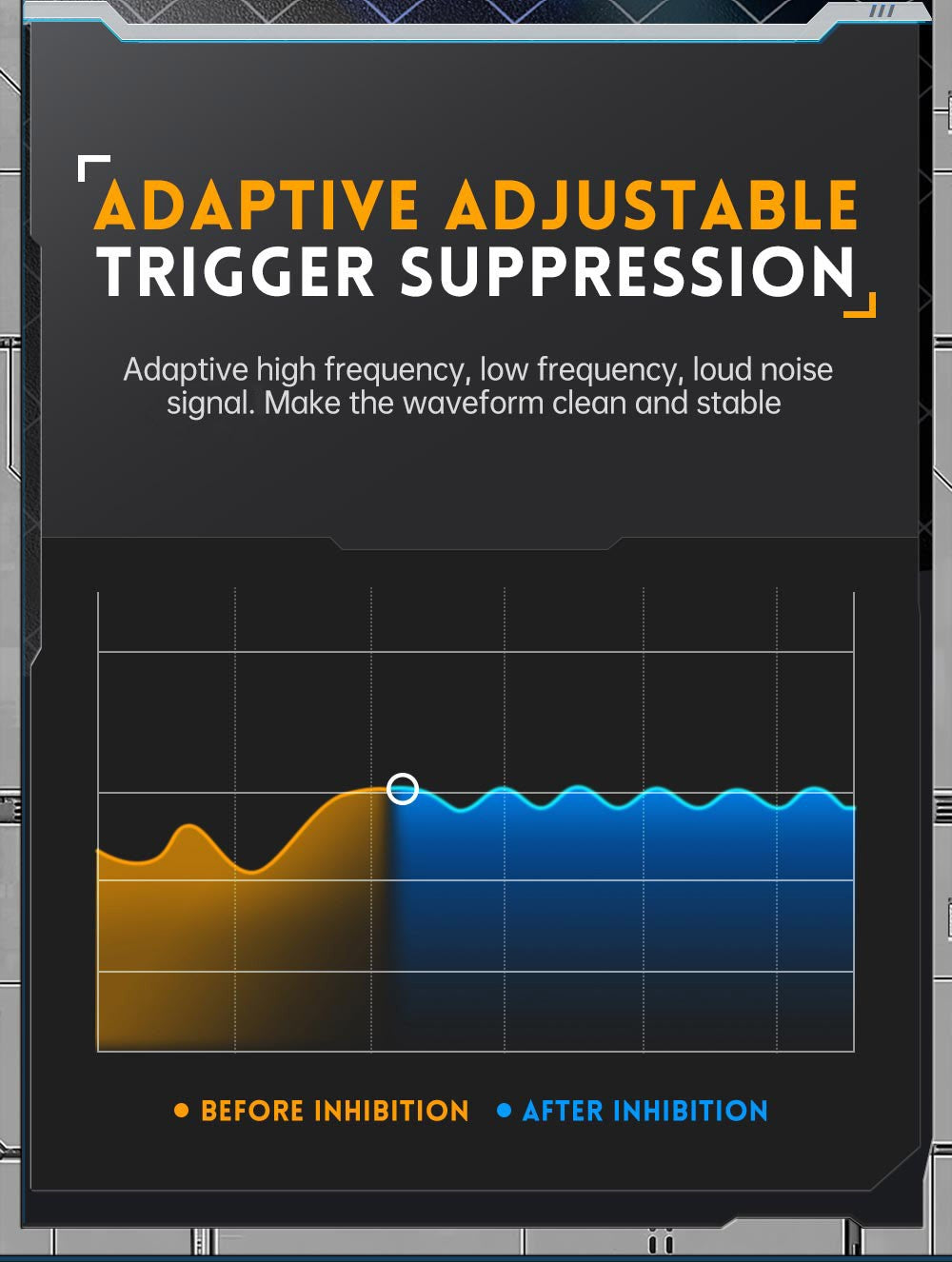 Relación señal/ruido ultra alta, medidas de apantallamiento totalmente selladas, diseño de retroalimentación de circuito estable, que hacen que la forma de onda sea limpia y clara. El límite de ancho de banda automático ajustable original y la supresión de activación adaptable ajustable son adecuados para analizar y medir señales con ruido relativamente grande.