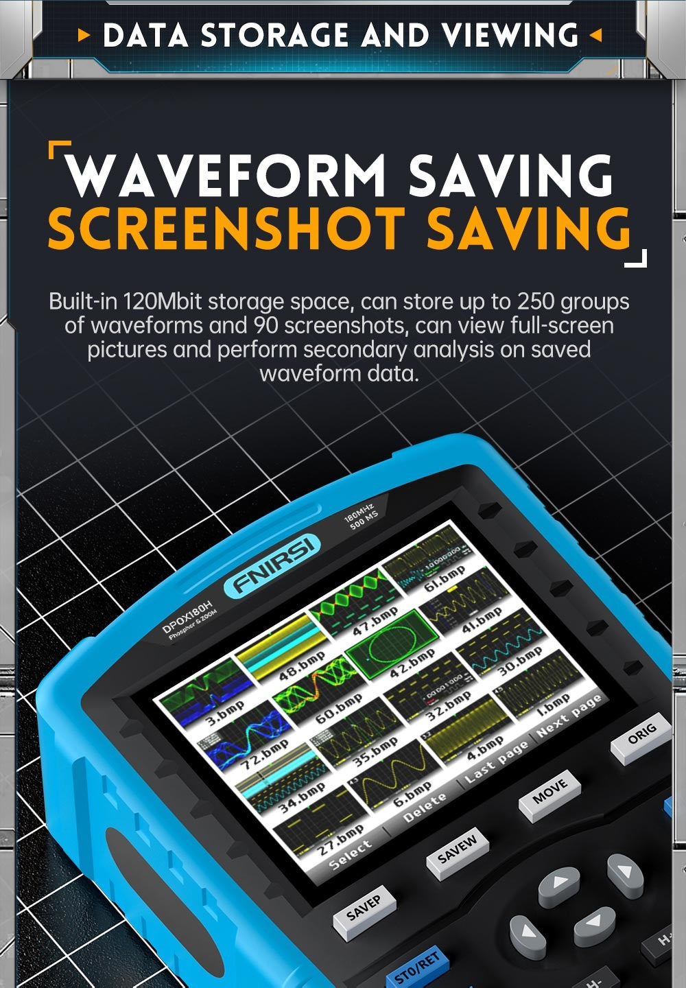 Se pueden almacenar hasta 250 conjuntos de datos de forma de onda o 90 imágenes, y se pueden almacenar 500 datos de onda interceptados al mismo tiempo. El navegador de datos puede examinar y visualizar los datos de forma de onda e imágenes guardados actualmente, y los datos de forma de onda admiten operaciones como zoom y desplazamiento.
