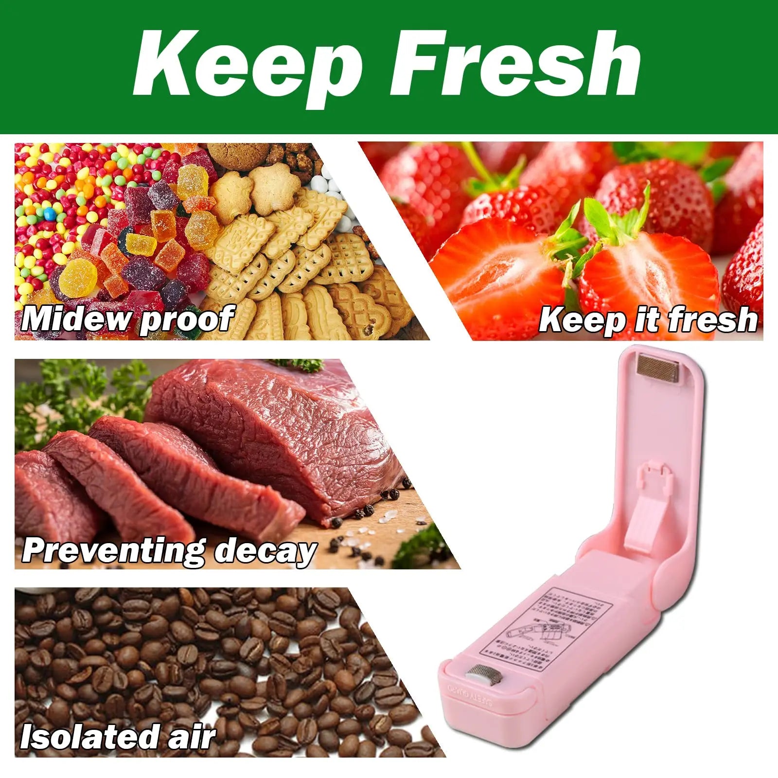 1pc Abs Material Multi-Functional Sealer Aa Battery-Powered Can Seal Potato Chips Instant Noodles And Any Other Plastic Bags