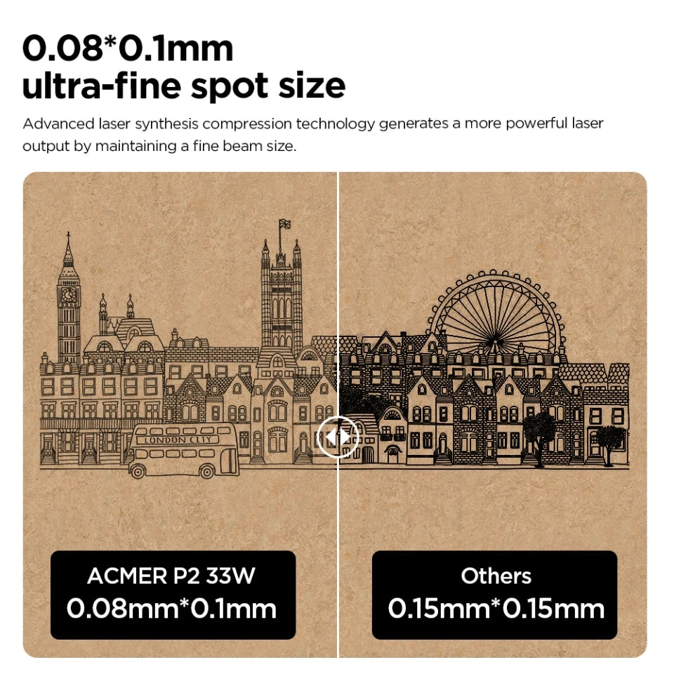 ACMER P2 33W lasers Engraving Air Assist WIFI APP Control CNC Metal woodworkers Engraving Laser Cutting Machine For Wooden