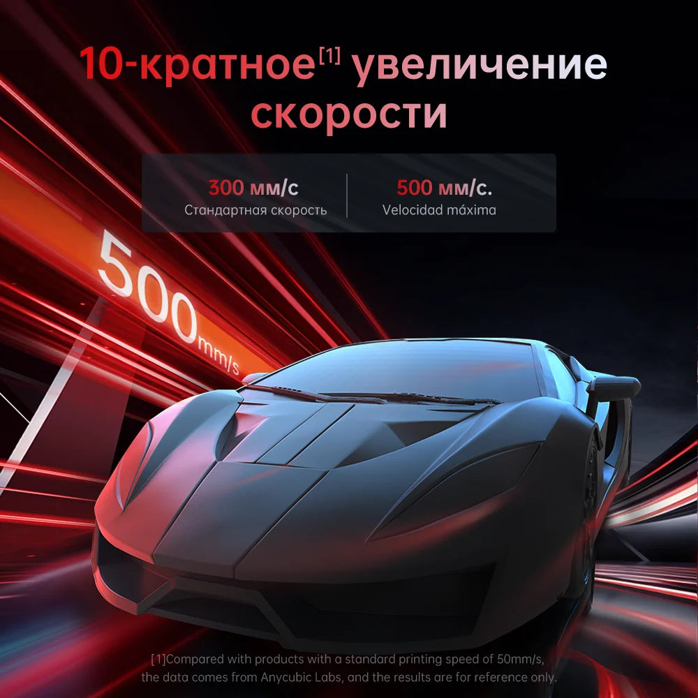 Compared to mainstream FDM 3D printers, the printing speed is increased by 10 times. Compared to products with a average printing speed of 50mm/s, data from Anycubic Lab, results are for reference only.