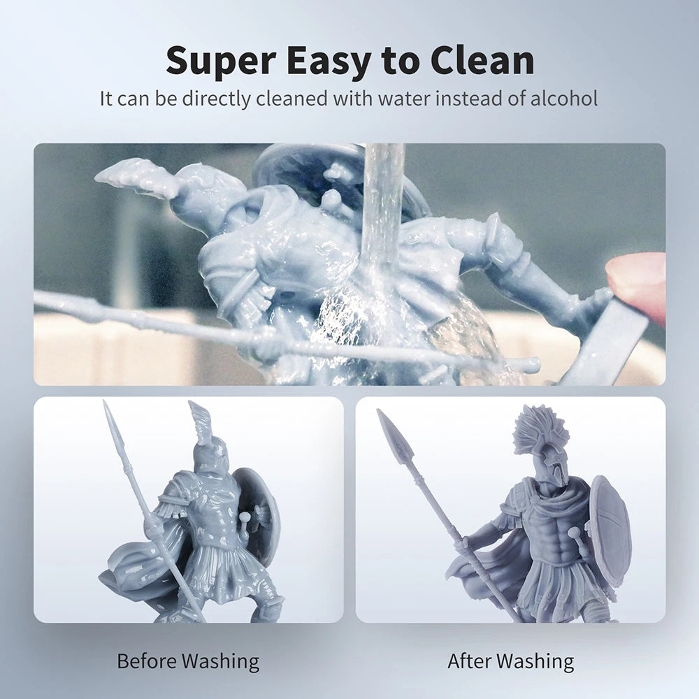 Easy to clean, rinse 3D prints with water instead of alcohol, so save your time and budget; ANYCUBIC Wash and Cure machines are suggested to ensure better effect.