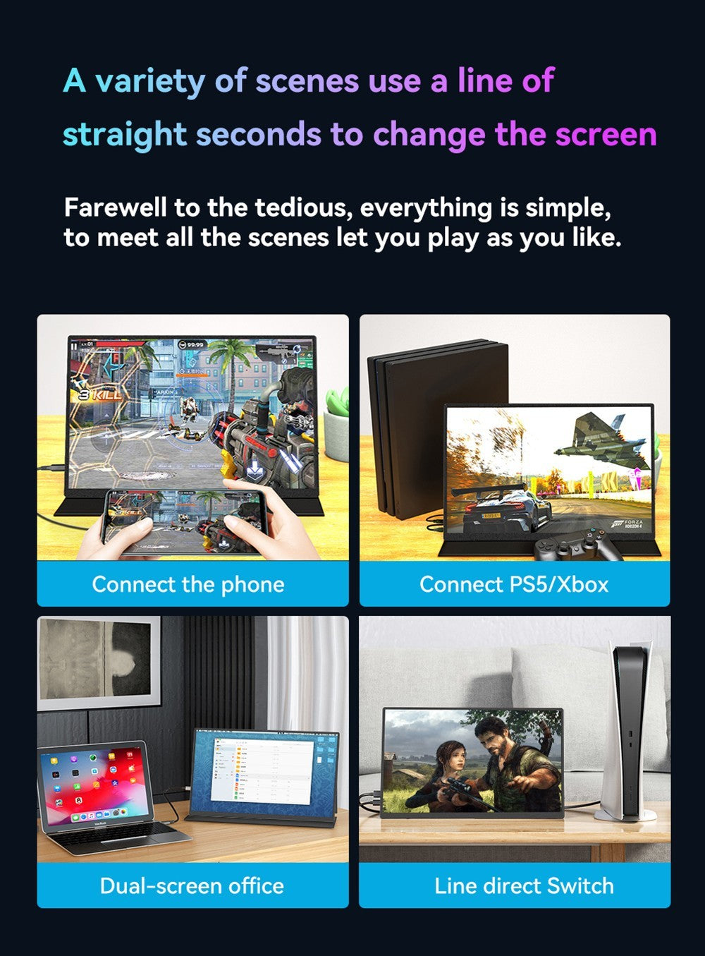 Various scenes switch office, entertainment, play games, and study online courses anytime and anywhere.