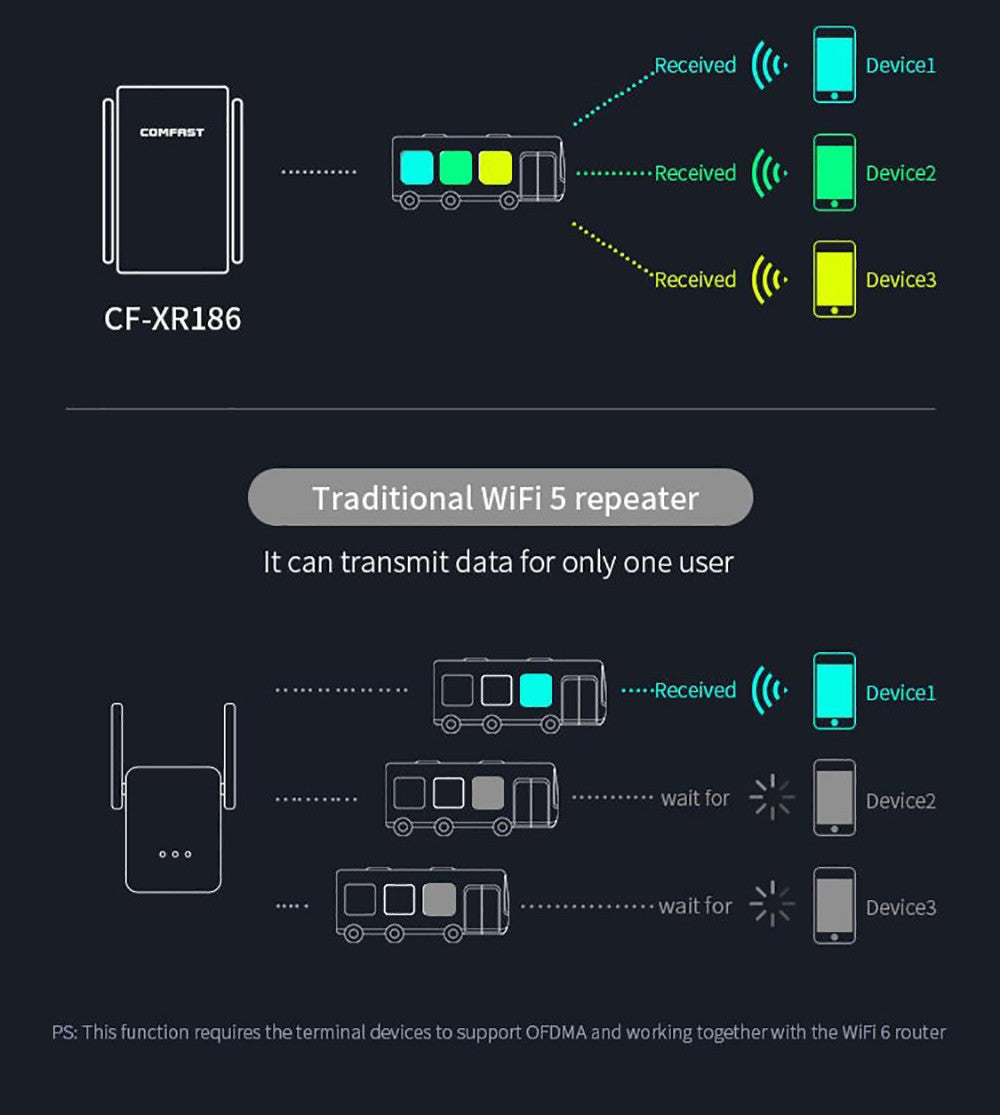 - Repeater mode (wireless to wireless): expand the WiFi signal of the main router, and clear the dead spots of WiFi.