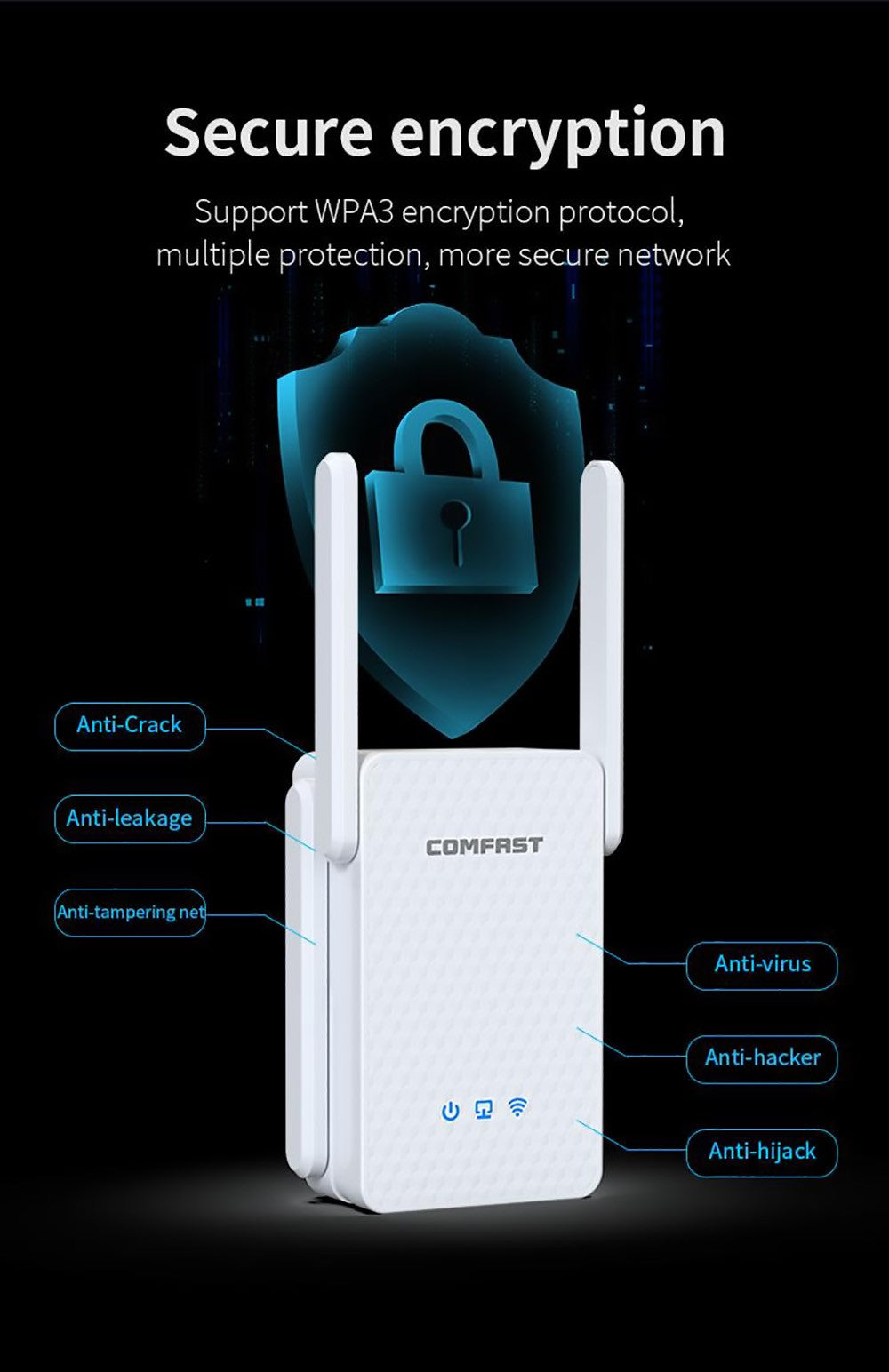 3. Support WPA3 encryption protocol, and multiple protections, and use the network more with ease.