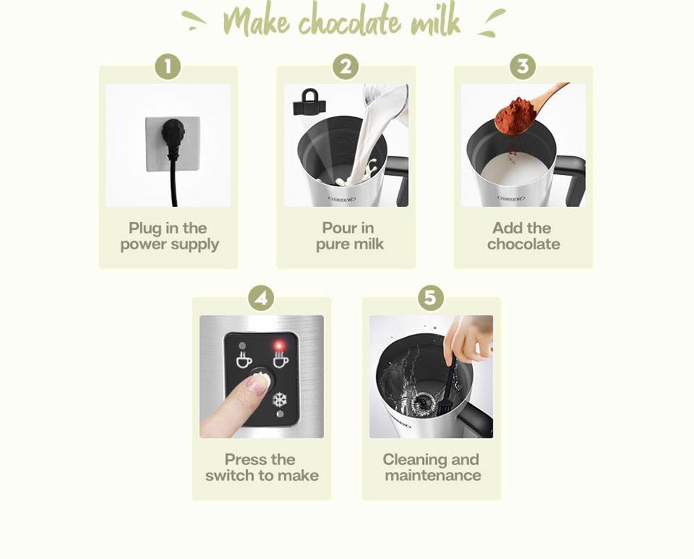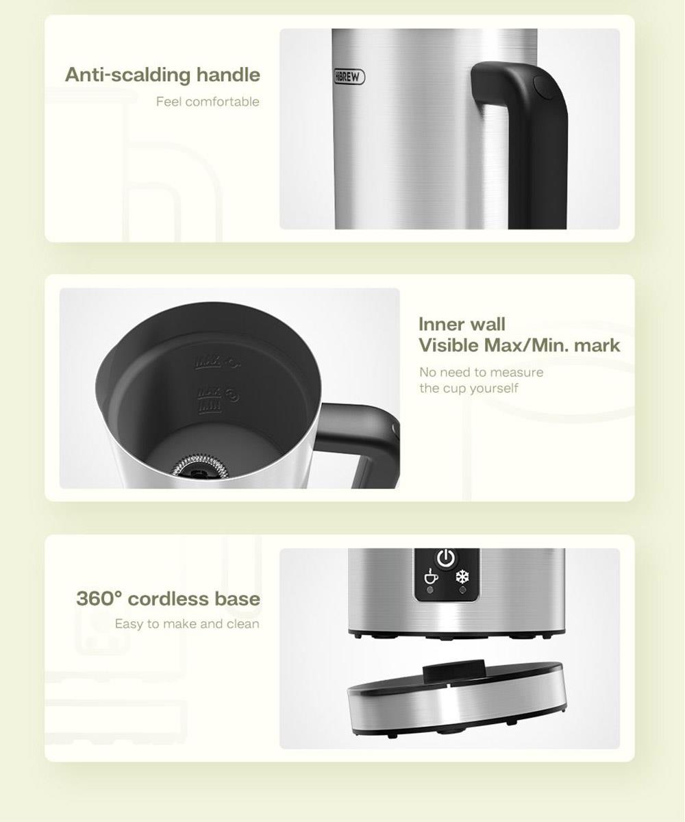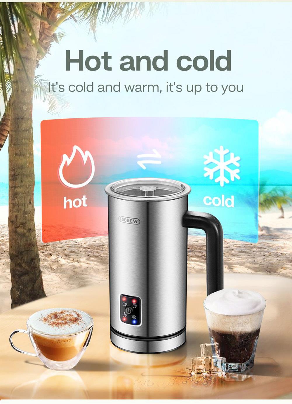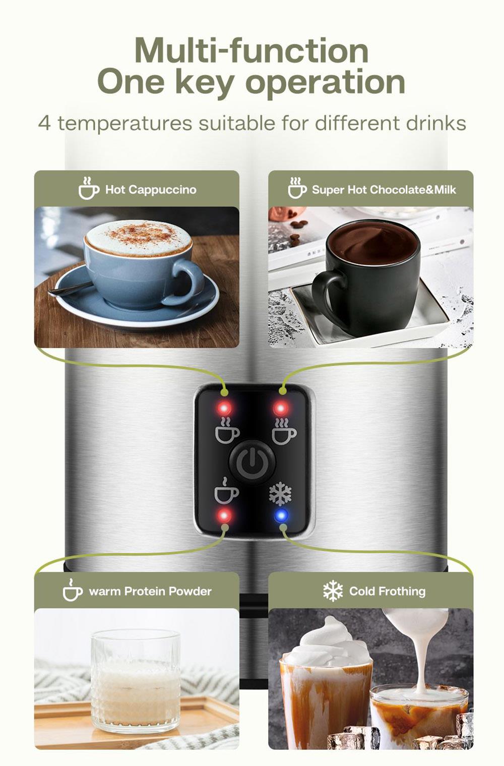 HiBREW M3 has four temperature options, allowing you to make delicious hot cappuccino, super hot chocolate & milk, warm protein powder, and cold frothing.
