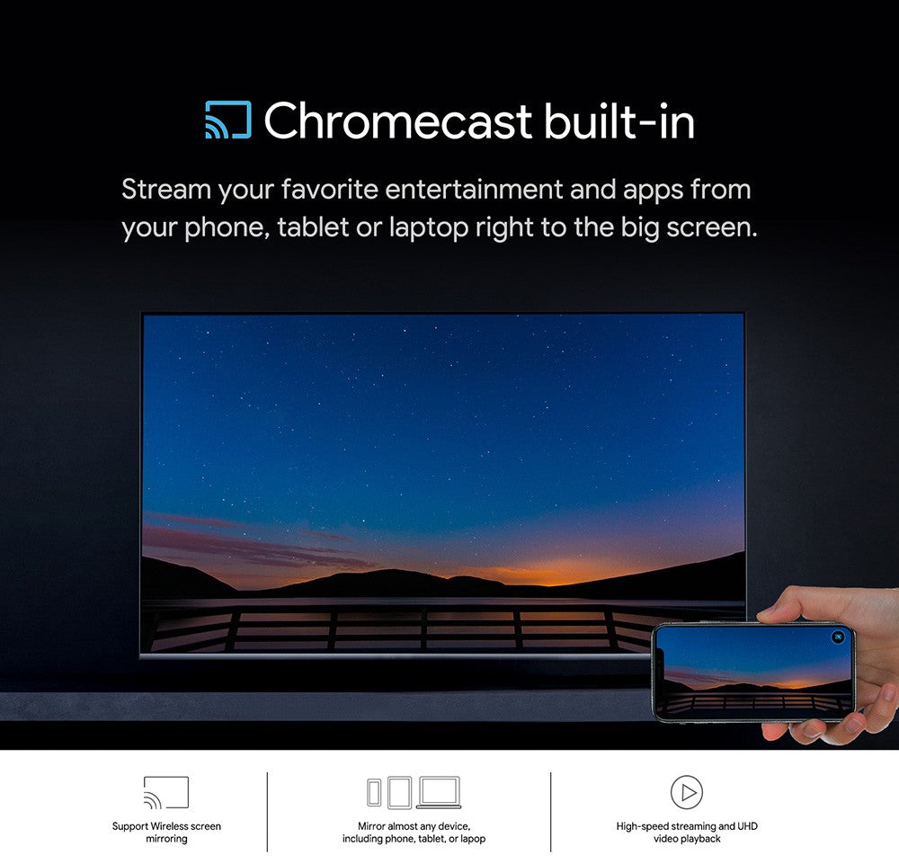 Stream your favorite entertainment and apps from your phone, tablet or laptop right to the big screen. Features the lastest 4K technolgoy and high-speed 4K processing for up to 60fps playback. With HDR ensures natural colors in both bright nd dark scenes.