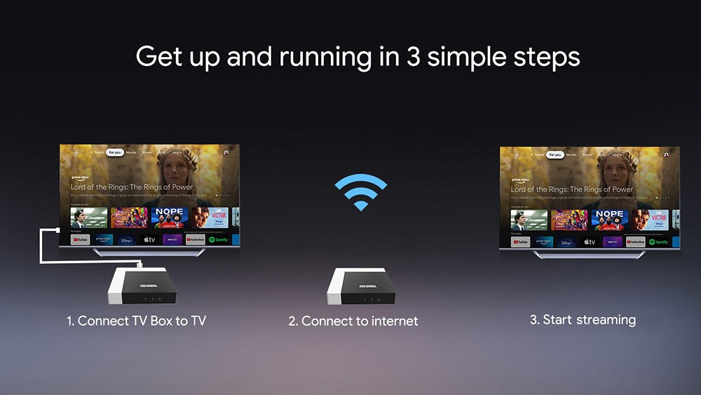 Android TV box supplies excellent memory (2GB RAM +16GB ROM) to let you download more movies, games or other files. The infrared Remote control ensures you enjoy your wonderful life which the wireless brings to you, you can one key directly to YouTube, Spotify, prime video interface. When pairing the remote control for the first time, the distance should be within 20 cm.