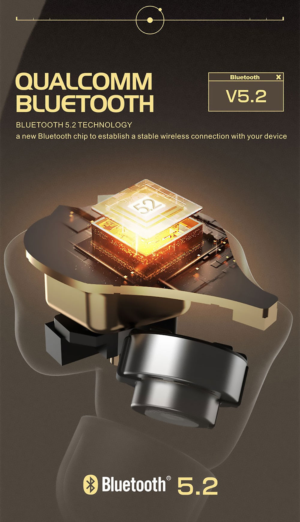 The Qualcomm QCC3040 chipset feeds a balanced membrane driver in each earpiece. The driver is two drivers, combining a tweeter and a woofer just like a good quality loudspeaker.